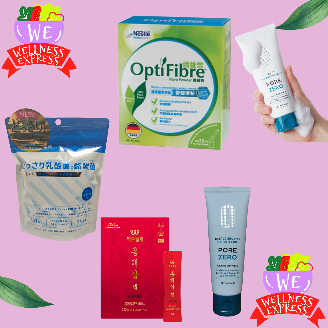 節省$280 1. 益生菌 2克x24 支 <日本製造> 2. 纖维樂 30包 <德國製造> 3. 紅海參精華 1盒 <韓國製造> 4. 洗面膏1支 150克 <韓國製造> 5. 去角質磨砂膏1支 100克 <韓國製造>