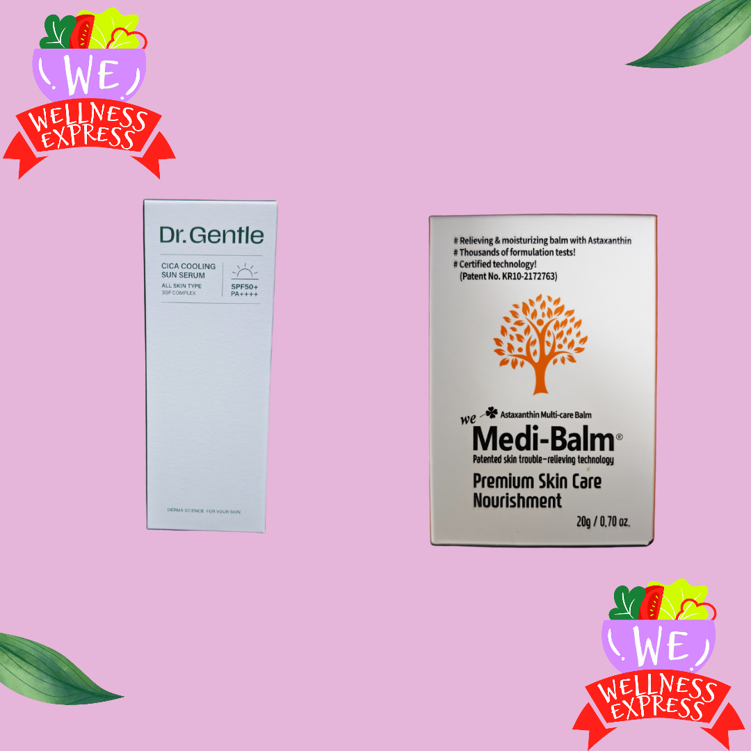 Medi Balm 為了改善由皮膚乾燥引發的皮膚問題,應當以皮膚自身順暢的水分供應和恢復屏障功能為皮膚管理的目標。 為此,選擇含有被科學證明的有用成分的護膚產品比什麼都重要。 Medi-Balm含有有助於保濕的生育酚、月見草油、山茶籽油、乳木果油等天然成分,有助於皮膚磷脂屏障功能的精製馬油、卵脂磷、三油酸甘油酯,有助於皮膚正常化的薄荷醇、食用硫礴、殼聚糖,以及論文中認證的緩和皮膚問題的抗氧化專利物質蝦青素,是保持皮膚正常狀態的最佳Balm產品 正常的皮膚充足的水分含量和細胞間脂雙層可實現由天然保濕因數(NMF)組成的角質細胞的有序排列,這意味著皮膚保護功能正常運轉的狀態 使用方法 順時針方向轉動按鈕,護膚品露出以後,隨時塗在需要的部位。 第二層透明瓶蓋是為了防 止產品在接觸空氣后氧化 而使用。切勿丟棄, 將第二層瓶蓋完全覆蓋之 后,避開直射光線,置於包中保管。 使用小貼士 隨時塗抹在敏感受刺激的 皮膚上。 隨時塗抹在容易乾燥、 粗糙、出現角質的皮膚周圍。 清爽的使用感和清涼的香氣,尤其方便用於乾燥的嘴唇和臉部皮膚最大程度地選用天然成分和無過敏源原料製成的安全性卓越的產品 韓國科研項目,孕婦,嬰兒,兒童放心使用 每瓶20克 韓國製造 Dr. Gentle 積雪草清涼防曬精華液 SPF50+ PA++++ 三重功能化妝品:改善皺紋、提亮、防紫外線 一款輕盈、清爽的防曬精華液,質地涼涼,塗抹順暢,不會起白粒或卡粉。提供粉末狀的紫外線防護,同時對皮膚溫和,提供即時保濕,打造水潤、柔軟的妝容。 50毫升 韓國製造 Medi Balm To improve skin problems caused by dry skin, skin management should aim to ensure smooth moisture supply and restore barrier function. For this, it is important to choose skin care products with useful ingredients that have been scientifically proven more than anything else. Medi-Balm contains tocopherols, evening primrose oil, which helps moisturize, camellia seed oil, shea butter and other natural ingredients, Refined horse oil, ovolipid phosphorus, glycerides trioleate, which help the skin to normalize the function, menthol, edible sulfur, chitosan, which helps to normalize the skin,and astaxanthin, an antioxidant patented substance certified in the paper to alleviate skin problems, is the best Balm product to maintain normal skin condition Normal skin Adequate moisture content and intercellular lipid bilayer allow for an orderly arrangement of keratinocytes composed of natural moisturizing factor (NMF), which means that the skin's protective functions are functioning properly How to use: Turn the button clockwise, and after the skin care product is exposed, apply it to the desired area at any time. The second layer of transparent bottle caps is for prevention Prevents the product from oxidizing after contact with air and use. Do not throw it away, Cover the second cap completely After that, keep it away from direct light and keep it in your bag. Tips for use Apply to sensitive irritated areas at any time on the skin. Apply at any time on easily dry, Around rough, flaky skin. Refreshing feel and cool fragrance Qi, especially convenient for dry lipsand facial skin Use natural ingredients to the maximum and allergen-free raw materials Products with excellent safety Korean scientific research project, pregnant women, babies, and children can use it with confidence 20 g per bottle Made in Korea Dr. Gentle Cica Cooling Sun Serum SPF50+ PA++++ Triple function cosmetic: wrinkle improvement, brightening, and UV protection A lightweight, refreshing sun serum with a cool texture that applies smoothly without cast or pilling. It provides powderful UV protection while being gentle on the skin, delivering instant hydration for dewy, soft finish. 50ml Made in Korea