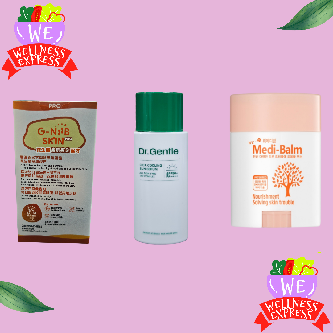 Medi Balm 為了改善由皮膚乾燥引發的皮膚問題,應當以皮膚自身順暢的水分供應和恢復屏障功能為皮膚管理的目標。 為此,選擇含有被科學證明的有用成分的護膚產品比什麼都重要。 Medi-Balm含有有助於保濕的生育酚、月見草油、山茶籽油、乳木果油等天然成分,有助於皮膚磷脂屏障功能的精製馬油、卵脂磷、三油酸甘油酯,有助於皮膚正常化的薄荷醇、食用硫礴、殼聚糖,以及論文中認證的緩和皮膚問題的抗氧化專利物質蝦青素,是保持皮膚正常狀態的最佳Balm產品 正常的皮膚充足的水分含量和細胞間脂雙層可實現由天然保濕因數(NMF)組成的角質細胞的有序排列,這意味著皮膚保護功能正常運轉的狀態 使用方法 順時針方向轉動按鈕,護膚品露出以後,隨時塗在需要的部位。 第二層透明瓶蓋是為了防止產品在接觸空氣后氧化而使用。切勿丟棄, 將第二層瓶蓋完全覆蓋之后,避開直射光線,置於包中保管 使用小貼士 隨時塗抹在敏感受刺激的 皮膚上。隨時塗抹在容易乾燥、 粗糙、出現角質的皮膚周圍。清爽的使用感和清涼的香氣,尤其方便用於乾燥的嘴唇和臉部皮膚最大程度地選用天然成分和無過敏源原料製成的安全性卓越的產品韓國科研項目,孕婦,嬰兒,兒童放心使用 每瓶20克 韓國製造 Dr. Gentle 積雪草清涼防曬精華液 SPF50+ PA++++ 三重功能化妝品:改善皺紋、提亮、防紫外線 一款輕盈、清爽的防曬精華液,質地涼涼,塗抹順暢,不會起白粒或卡粉。提供粉末狀的紫外線防護,同時對皮膚溫和,提供即時保濕,打造水潤、柔軟的妝容。 50毫升 韓國製造 G-NiiB Skin 微生態敏肌配方【醫護所專用】 香港著名大學醫學院研發 專利配方特點︰ 補充敏肌益菌,改善敏肌紅損痕 成份︰ 精準活益菌(100億 CFU)+益生元 🔬臨床驗證,安全有效 (持續服用4個月) ✅改善敏肌紅損痕 ✅全身整體敏肌範圍及嚴重程度減少-23% ✅改善敏肌的影響,生活質素提升+37.5% ✅增強自身免疫力,有助腸道及肌膚健康,減少易敏反應 🧬意大利專利微膠囊鎖活菌技術 適合人士︰ 6歲或以上健康人群、孕婦及授乳期婦女。6歲以下兒童。請先諮詢醫生意見 數量: 一盒28 包 使用說明︰ 每日一包,或遵照醫護人員建議使用。包裏粉末可直接加於清水,或放進食物、非酒精非碳酸類飲品(低於45℃)中攪拌然後食用。可於任何時間服用,但隨餐食用效果更好。如欲了解產品資料,請向醫護人員查詢。 意大利製造 Medi Balm To improve skin problems caused by dry skin, skin management should aim to ensure smooth moisture supply and restore barrier function. For this, it is important to choose skin care products with useful ingredients that have been scientifically proven more than anything else. Medi-Balm contains tocopherols, evening primrose oil, which helps moisturize, camellia seed oil, shea butter and other natural ingredients, Refined horse oil, ovolipid phosphorus, glycerides trioleate, which help the skin to normalize the function, menthol, edible sulfur, chitosan, which helps to normalize the skin,and astaxanthin, an antioxidant patented substance certified in the paper to alleviate skin problems, is the best Balm product to maintain normal skin condition Normal skin Adequate moisture content and intercellular lipid bilayer allow for an orderly arrangement of keratinocytes composed of natural moisturizing factor (NMF), which means that the skin's protective functions are functioning properly How to use: Turn the button clockwise, and after the skin care product is exposed, apply it to the desired area at any time. The second layer of transparent bottle caps is for prevention Prevents the product from oxidizing after contact with air and use. Do not throw it away, Cover the second cap completely After that, keep it away from direct light and keep it in your bag. Tips for use Apply to sensitive irritated areas at any time on the skin. Apply at any time on easily dry, Around rough, flaky skin. Refreshing feel and cool fragrance Qi, especially convenient for dry lips and facial skin Use natural ingredients to the maximum and allergen-free raw materials Products with excellent safety Korean scientific research project, pregnant women, babies, and children can use it with confidence 20 g per bottle Made in Korea Dr. Gentle Cica Cooling Sun Serum SPF50+ PA++++ Triple function cosmetic: wrinkle improvement, brightening, and UV protection A lightweight, refreshing sun serum with a cool texture that applies smoothly without cast or pilling. It provides powderful UV protection while being gentle on the skin, delivering instant hydration for dewy, soft finish. 50ml Made in Korea Skin Pro probiotics 28 sachet per box Made in Italy