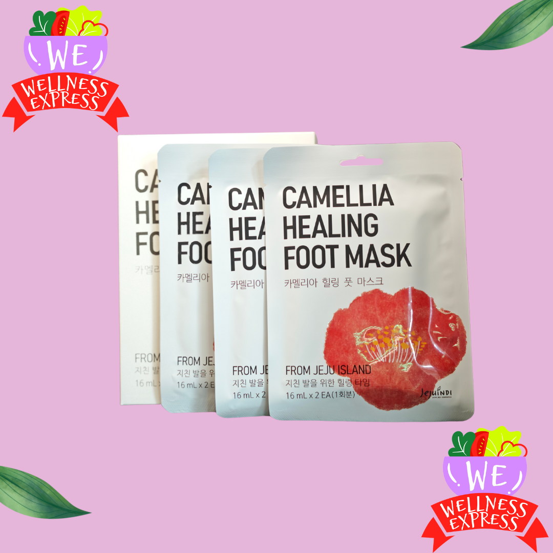 山茶花足膜 針對粗糙腳肌膚,腳肌膚變滑,細膩 每盒6包,每包2片 韓國濟州島製造 Camellia Healing Foot Mask For rough, cracked feet, smooth and soft 6 packs per box, 2 sheets per pack Made in Korea